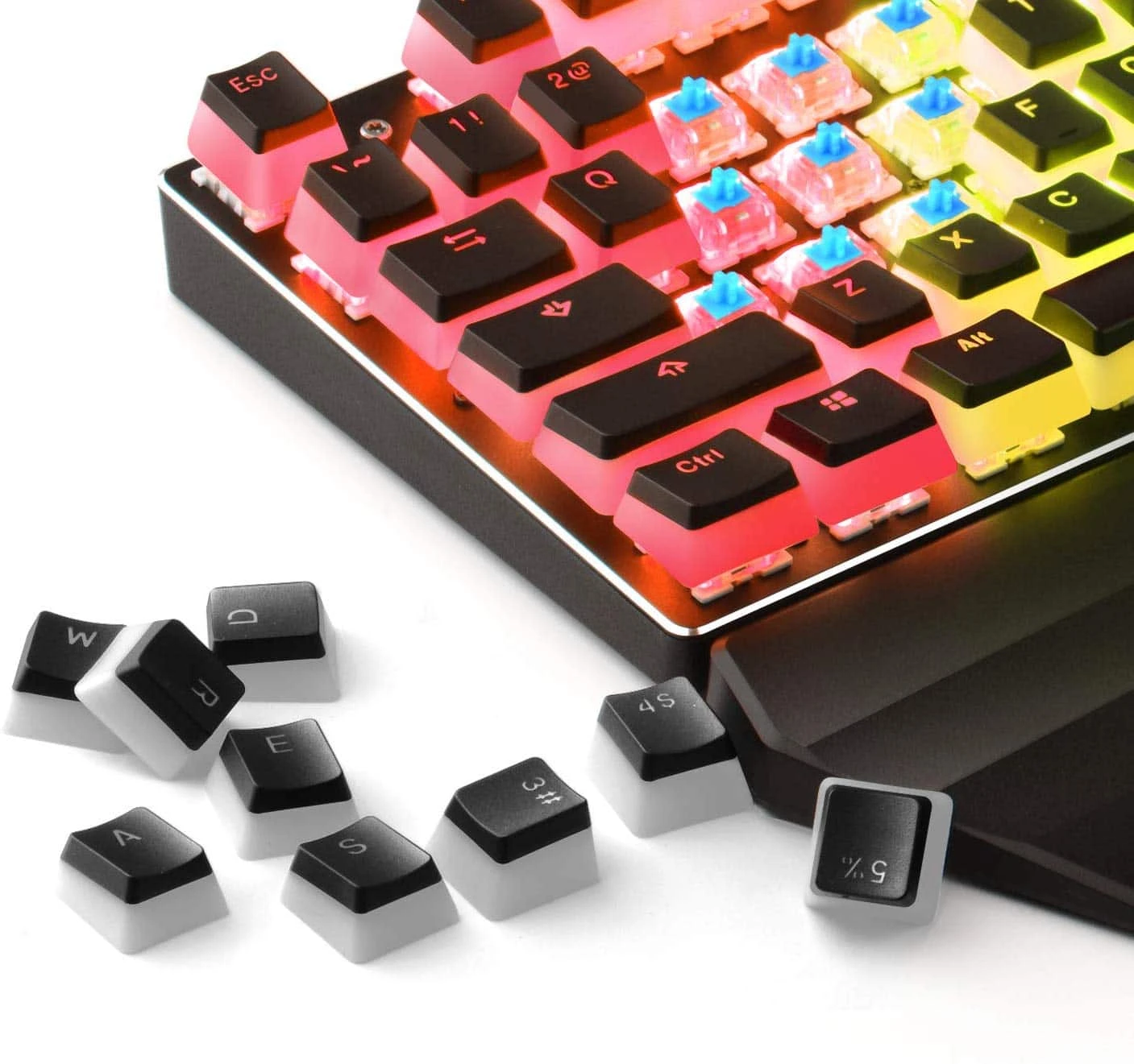 HAVIT KC22 PBT Keycaps come with two layers of color (Black +White), and the pudding design allows RGB keyboard to display more dazzling RGB lighting effect.